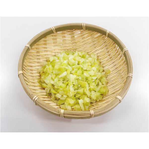 自然解凍で使用可・完全加熱不要、そして約5mmサイズの小さいカットのため、調理時間短縮・省力化にお役立ていただけます。