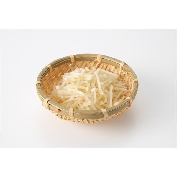 用途が多く様々なメニューに使用されているえのきを使いやすい大きさにカットした商品です。汁物、和え物、炒め物など様々なメニューにご利用いただけます。