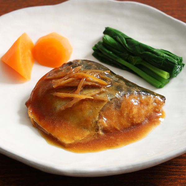 骨を丁寧に取り除いたさばにかつおの旨味を加えた醤油ベースのタレと千切生姜を使い、バランスの良い煮魚に仕上げました。
