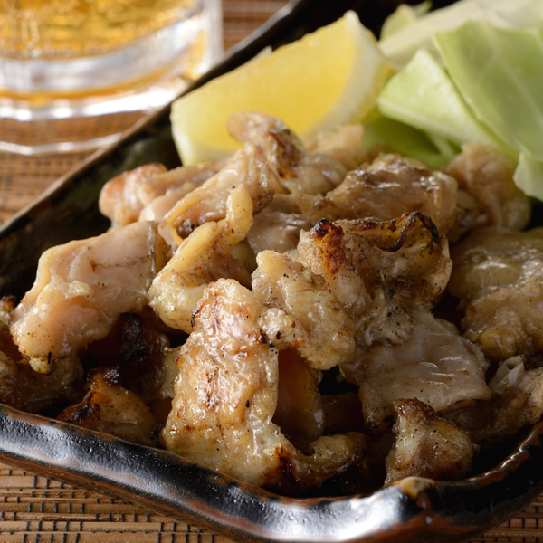 鶏1羽からわずかしか取れない希少な部位ハラミを炭火で焼き上げました。スパイシーな味付けとぷりぷりの食感が、おつまみに最適です。