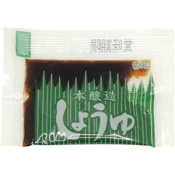 芳ばしい香り、明るく冴えた色が特長のしょうゆです。お弁当等別添用に十分な容量の3ml です。お弁当やお寿司と相性のよいバランのデザインです。